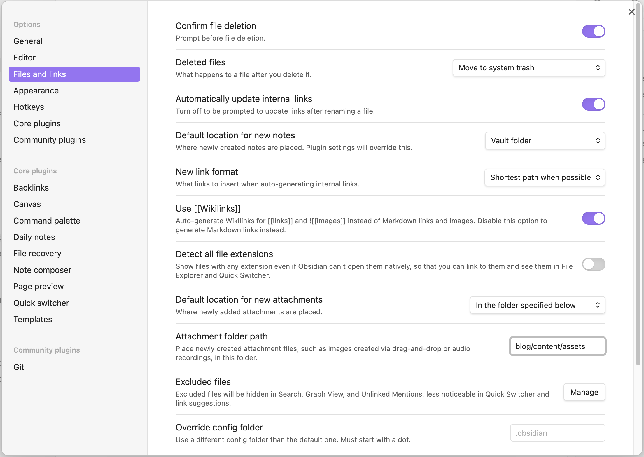 blog/content/assetsas the Attachment folder path, or you can choose somewhere else