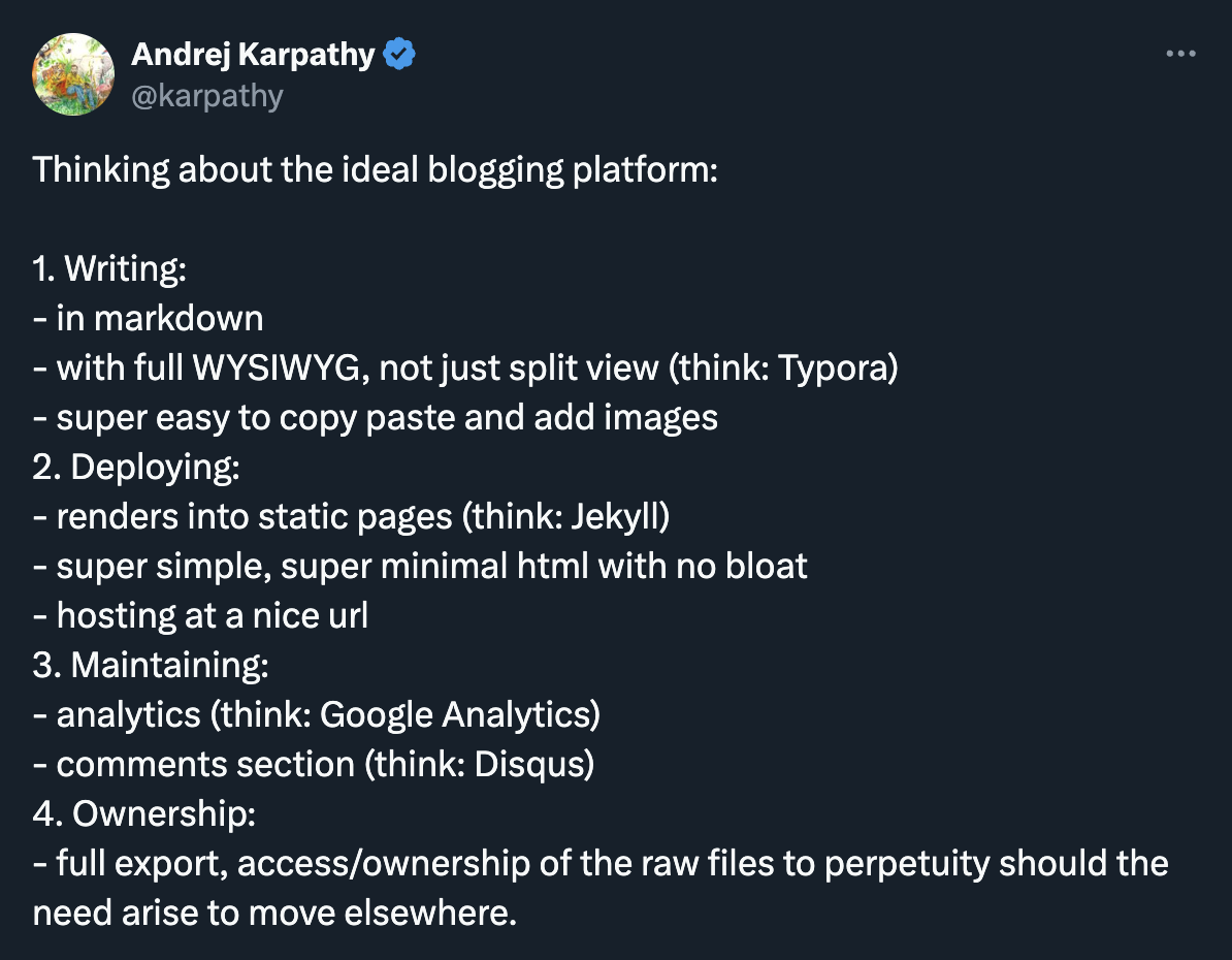 The other day I was looking for an easy way to build and publish my blog when I came across this post on X: