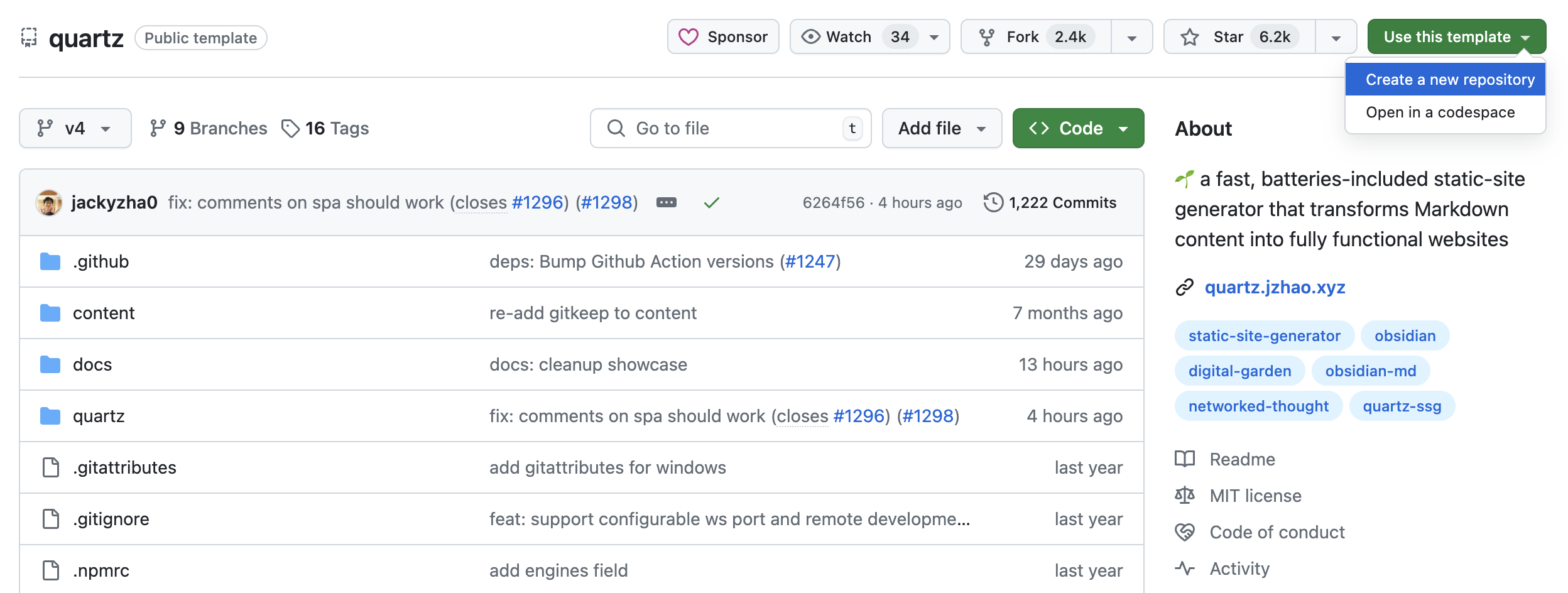 - Go to https://github.com/jackyzha0/quartz and click Fork at the top