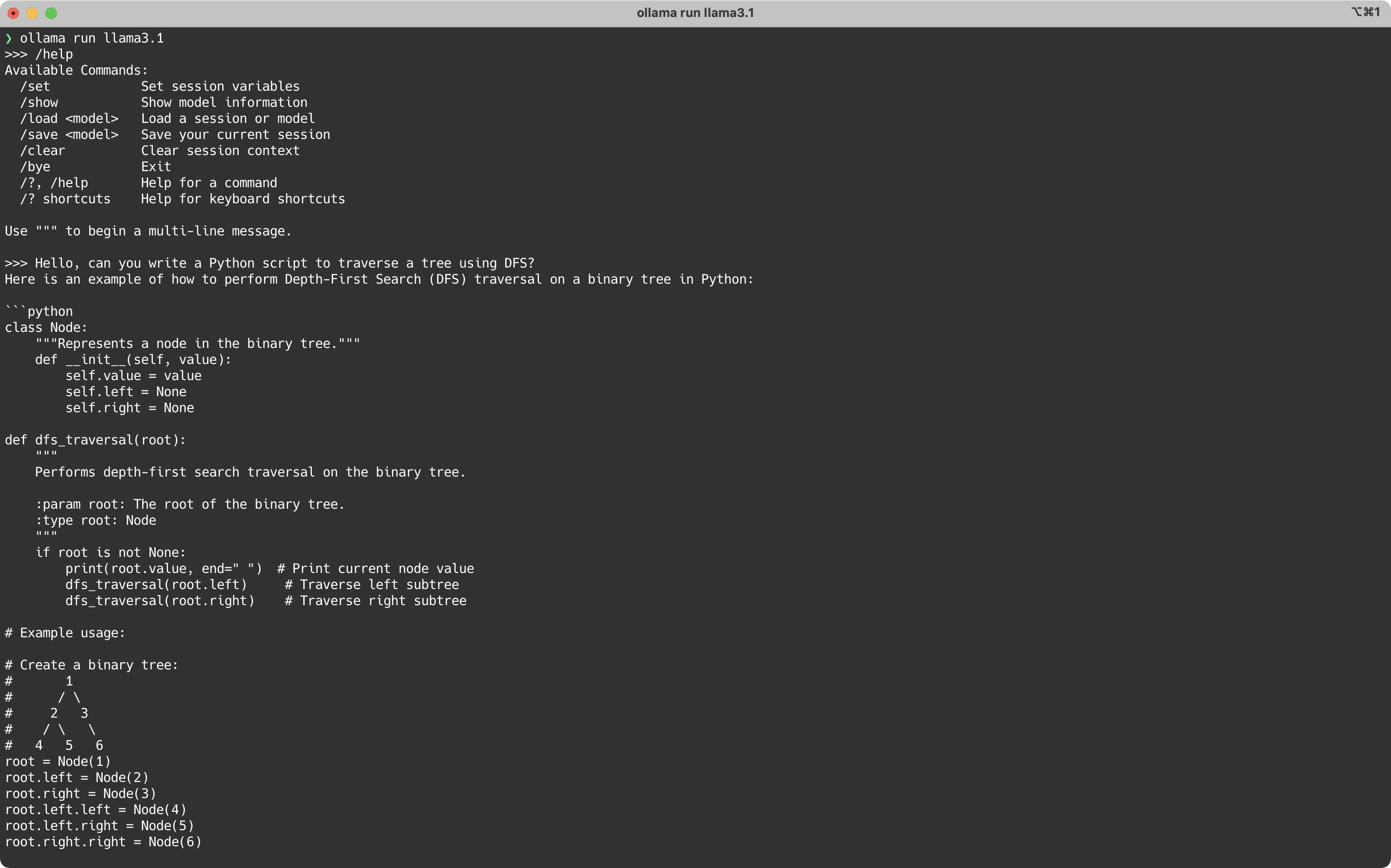ollama run llama3.1You can then enter your questions and have the AI give you the answers.